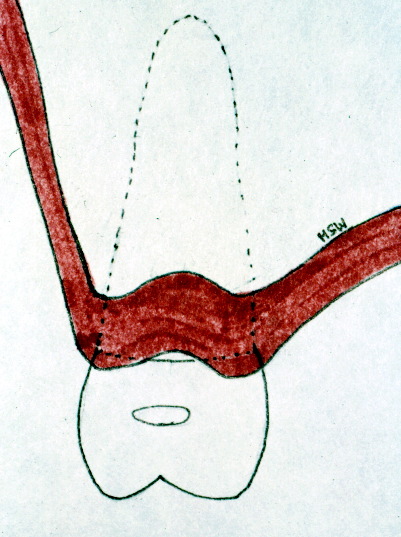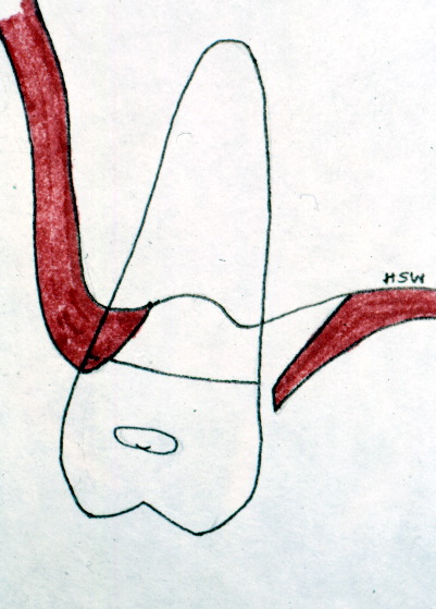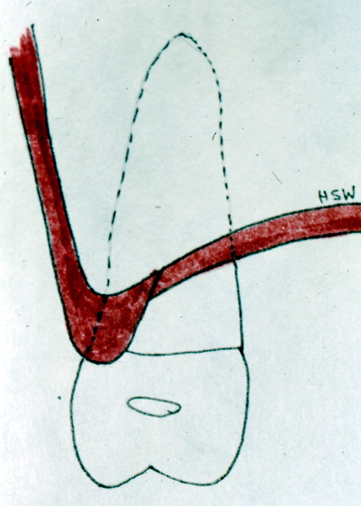 Repair of the bone damage is made by hiding the correction toward the tongue side.